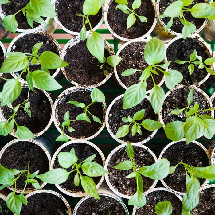 - Można użyć wielodoniczek lub pojemników po produktach spożywczych (jogurty, pakowane warzywa, plastikowe pojemniki z pokrywą po daniach na wynos) – koniecznie z otworami drenażowymi.